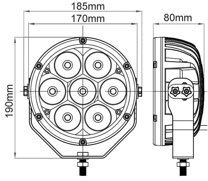 7 Inch Driving Light 7 x 10 watt LEDS SPOT 5700 LUMENS